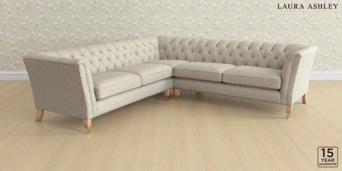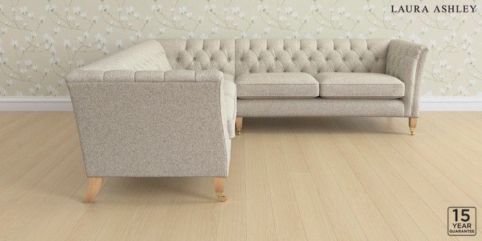 6.12.1 Buy Chatsworth Button Back by Laura Ashley Medium Corner Sofa - Universal Tichwell Stone Natural Straight Brass Castor - Light Oak from the Next UK online shop Click here to use our accessible website