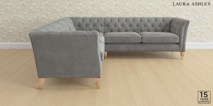 6.12.1 Buy Chatsworth Button Back by Laura Ashley Medium Corner Sofa - Universal Wooton Dark Steel Grey Straight Brass Castor - Light Oak from the Next UK online shop Click here to use our accessible website