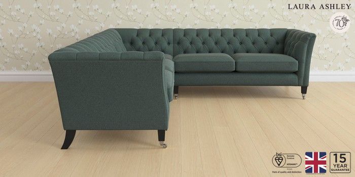 6.12.1 Buy Chatsworth Button Back by Laura Ashley Medium Corner Sofa - Universal Wooton Forest Green Straight Chrome Castor - Black from the Next UK online shop Click here to use our accessible website