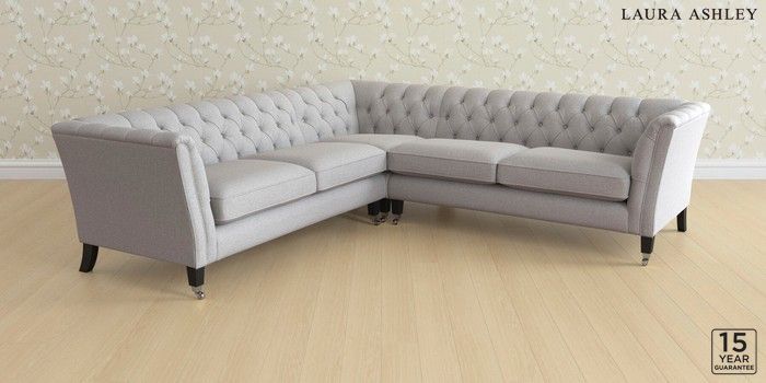 6.12.1 Buy Chatsworth Button Back by Laura Ashley Medium Corner Sofa - Universal Wooton Pale Steel Grey Straight Chrome Castor - Black from the Next UK online shop Click here to use our accessible website
