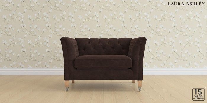 6.12.13 Buy Chatsworth Button Back by Laura Ashley Snuggle Alwyn Velvet Chocolate Brown Straight Chrome Castor - Light Oak from the Next UK online shop Click here to use our accessible website