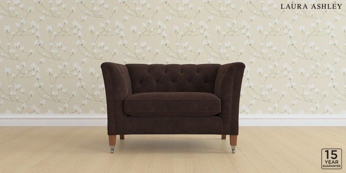 6.12.1 Buy Chatsworth Button Back by Laura Ashley Snuggle Alwyn Velvet Chocolate Brown Straight Chrome Castor - Teak from the Next UK online shop Click here to use our accessible website