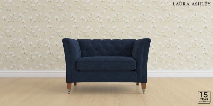 6.12.1 Buy Chatsworth Button Back by Laura Ashley Snuggle Alwyn Velvet Midnight Navy Straight Chrome Castor - Teak from the Next UK online shop Click here to use our accessible website
