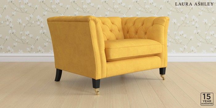 6.12.1 Buy Chatsworth Button Back by Laura Ashley Snuggle Bainton Ochre Yellow Straight Brass Castor - Black from the Next UK online shop Click here to use our accessible website