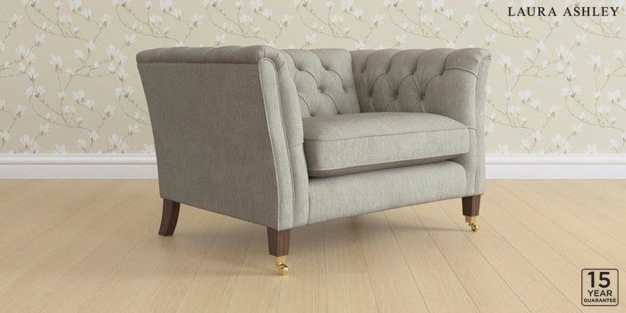 6.12.1 Buy Chatsworth Button Back by Laura Ashley Snuggle Bainton Pale Steel Grey Straight Brass Castor - Chestnut from the Next UK online shop Click here to use our accessible website
