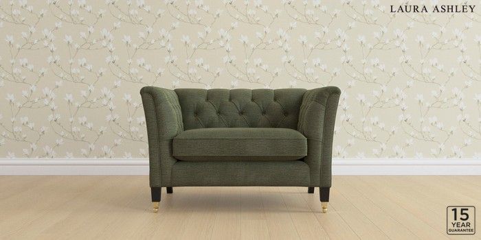 6.12.1 Buy Chatsworth Button Back by Laura Ashley Snuggle Edwin Chenille Hedgerow Green Straight Brass Castor - Black from the Next UK online shop Click here to use our accessible website