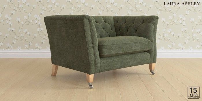 6.12.1 Buy Chatsworth Button Back by Laura Ashley Snuggle Edwin Chenille Hedgerow Green Straight Chrome Castor - Light Oak from the Next UK online shop Click here to use our accessible website