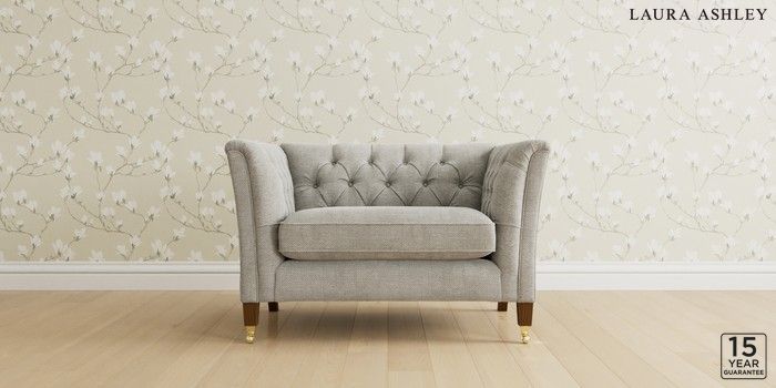 6.12.1 Buy Chatsworth Button Back by Laura Ashley Snuggle Edwin Chenille Silver Grey Straight Brass Castor - Teak from the Next UK online shop Click here to use our accessible website