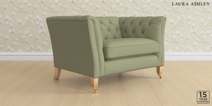 6.12.1 Buy Chatsworth Button Back by Laura Ashley Snuggle Edwin Herringbone Hedgerow Green Straight Brass Castor - Light Oak from the Next UK online shop Click here to use our accessible website