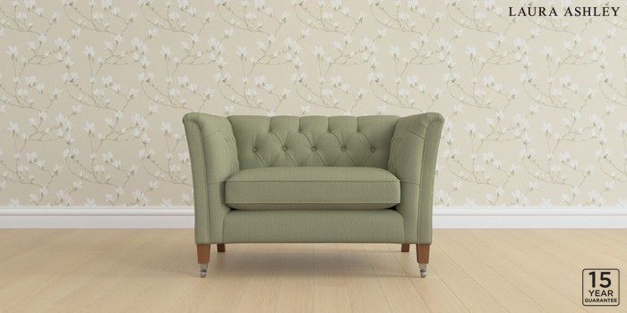 6.12.1 Buy Chatsworth Button Back by Laura Ashley Snuggle Edwin Herringbone Hedgerow Green Straight Chrome Castor - Teak from the Next UK online shop Click here to use our accessible website
