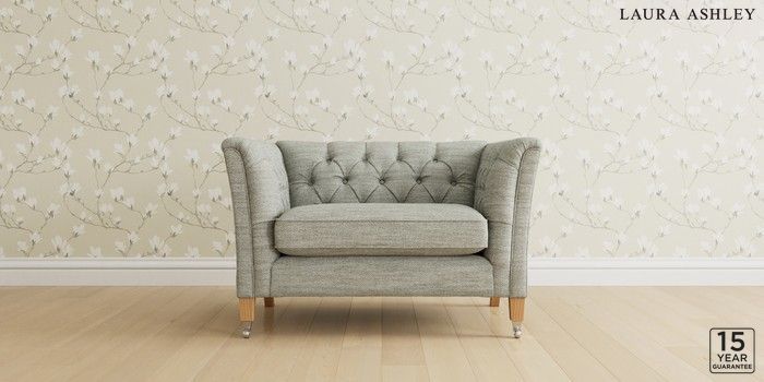 6.12.1 Buy Chatsworth Button Back by Laura Ashley Snuggle Harley Dove Grey Straight Chrome Castor - Light Oak from the Next UK online shop Click here to use our accessible website