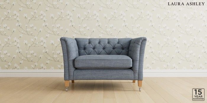 6.12.1 Buy Chatsworth Button Back by Laura Ashley Snuggle Harley Seaspray Blue Straight Chrome Castor - Light Oak from the Next UK online shop Click here to use our accessible website