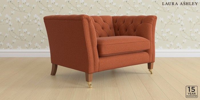 6.12.13 Buy Chatsworth Button Back by Laura Ashley Snuggle Harley Terracotta Orange Straight Brass Castor - Teak from the Next UK online shop Click here to use our accessible website