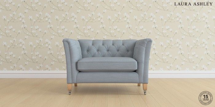 6.12.1 Buy Chatsworth Button Back by Laura Ashley Snuggle Kinsham Seaspray Blue Straight Chrome Castor - Light Oak from the Next UK online shop Click here to use our accessible website