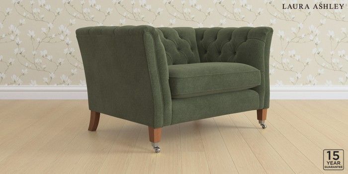 6.12.13 Buy Chatsworth Button Back by Laura Ashley Snuggle Lundar Chenille Ivy Green Straight Chrome Castor - Teak from the Next UK online shop Click here to use our accessible website
