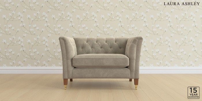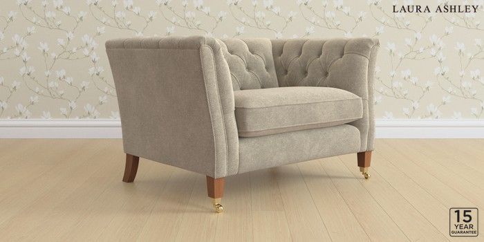 6.12.1 Buy Chatsworth Button Back by Laura Ashley Snuggle Lundar Chenille Truffle Natural Straight Brass Castor - Teak from the Next UK online shop Click here to use our accessible website