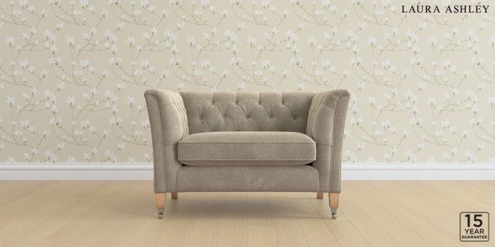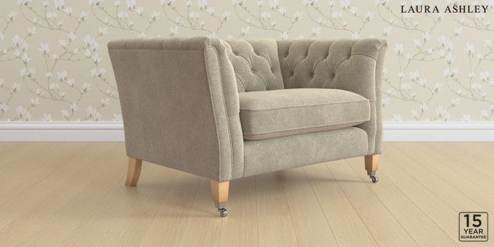 6.12.13 Buy Chatsworth Button Back by Laura Ashley Snuggle Lundar Chenille Truffle Natural Straight Chrome Castor - Light Oak from the Next UK online shop Click here to use our accessible website