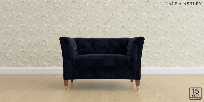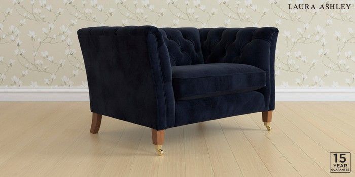 6.12.1 Buy Chatsworth Button Back by Laura Ashley Snuggle Orla Midnight Navy Straight Brass Castor - Teak from the Next UK online shop Click here to use our accessible website