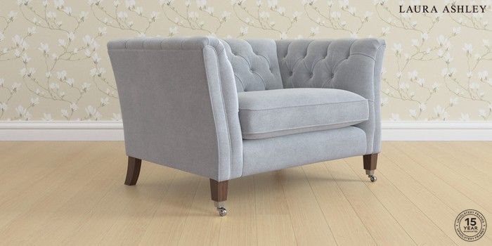6.12.1 Buy Chatsworth Button Back by Laura Ashley Snuggle Peyton Powder Blue Straight Chrome Castor - Chestnut from the Next UK online shop Click here to use our accessible website