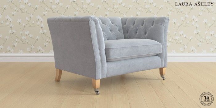 6.12.1 Buy Chatsworth Button Back by Laura Ashley Snuggle Peyton Powder Blue Straight Chrome Castor - Light Oak from the Next UK online shop Click here to use our accessible website