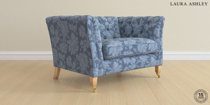 6.12.1 Buy Chatsworth Button Back by Laura Ashley Snuggle Tamara Dusky Seaspray Blue Straight Brass Castor - Light Oak from the Next UK online shop Click here to use our accessible website