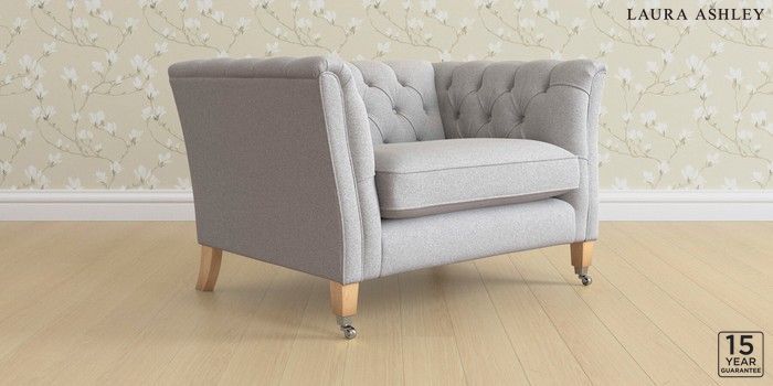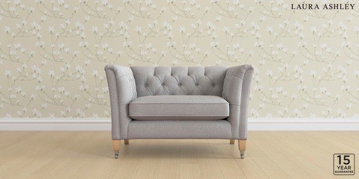 6.12.1 Buy Chatsworth Button Back by Laura Ashley Snuggle Wooton Pale Steel Grey Straight Chrome Castor - Light Oak from the Next UK online shop Click here to use our accessible website