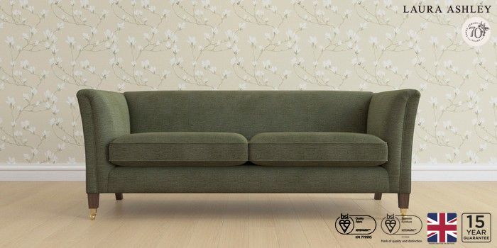 6.11.4 Buy Chatsworth by Laura Ashley 3 Seater Sofa Edwin Chenille Hedgerow Green Straight Brass Castor - Chestnut from the Next UK online shop Click here to use our accessible website