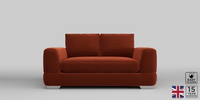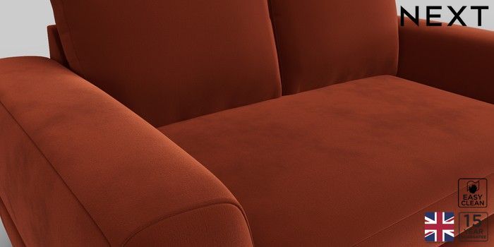 6.11.4 Buy Clayton 2 Seater Small Sofa Plush Velvet Easy Clean Ginger Orange Large Square Angle - Chrome Metal from the Next UK online shop Click here to use our accessible website