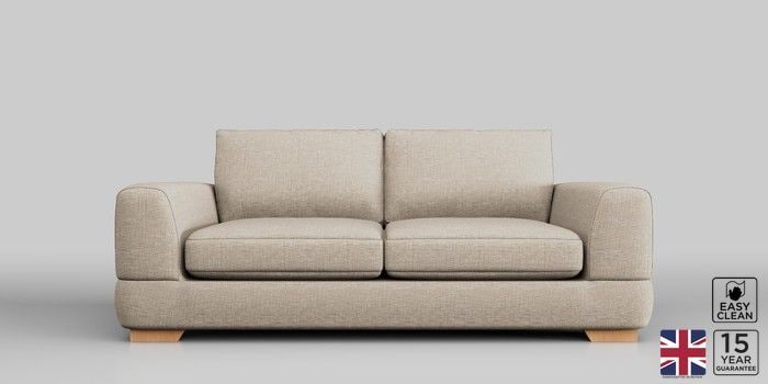6.11.4 Buy Clayton 3 Seater Small Sofa Boucle Weave Easy Clean Dark Natural Large Square Angle - Light from the Next UK online shop Click here to use our accessible website