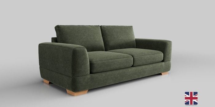 6.12.1 Buy Clayton 3 Seater Small Sofa Luxe Chenille Mid Green Large Square Angle - Light from the Next UK online shop Click here to use our accessible website