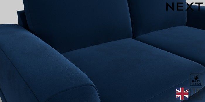6.11.4 Buy Clayton 3 Seater Small Sofa Plush Velvet Easy Clean Navy Blue Large Square Angle - Mid from the Next UK online shop Click here to use our accessible website