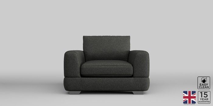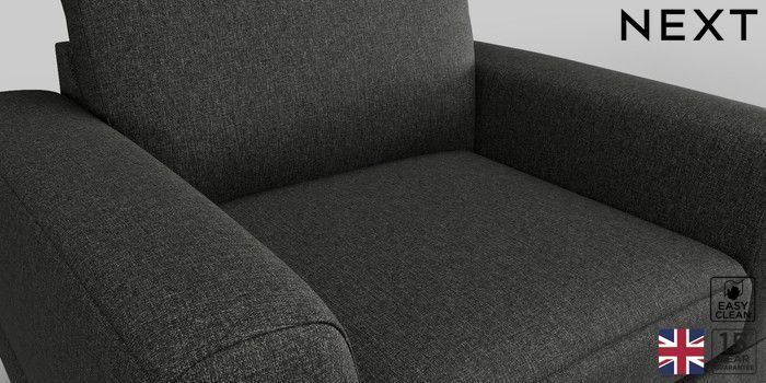 6.11.8 Buy Clayton Armchair Tweedy Blend Easy Clean Charcoal Grey Square Angle - Gunmetal from the Next UK online shop Click here to use our accessible website