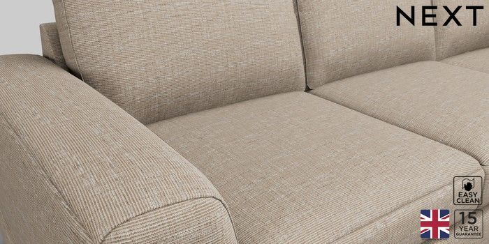 6.12.1 Buy Clayton Medium Corner Chaise - Left Hand Boucle Weave Easy Clean Dark Natural Large Square Angle - Dark from the Next UK online shop Click here to use our accessible website