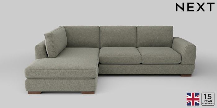 6.12.1 Buy Clayton Medium Corner Chaise - Left Hand Chunky Marl Light Olive Green Large Square Angle - Mid from the Next UK online shop Click here to use our accessible website