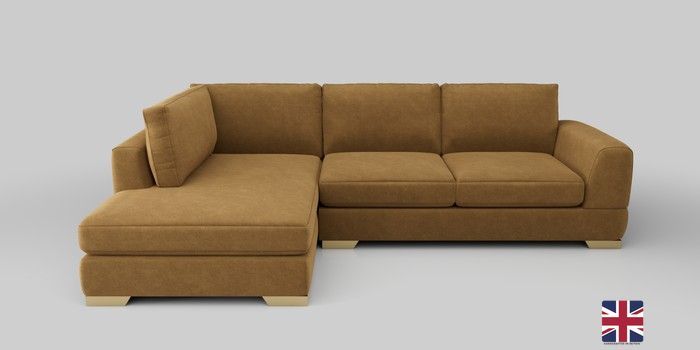 7.0.3 Buy Clayton Medium Corner Chaise - Left Hand Luxe Chenille Honey Yellow Large Square Angle - Brushed Brass from the Next UK online shop Click here to use our accessible website