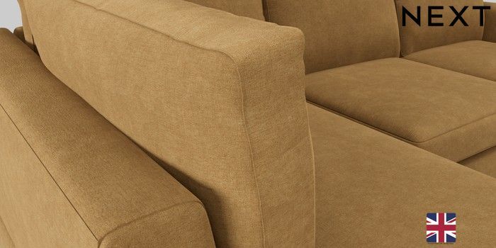 7.0.3 Buy Clayton Medium Corner Chaise - Left Hand Luxe Chenille Honey Yellow Large Square Angle - Chrome Metal from the Next UK online shop Click here to use our accessible website