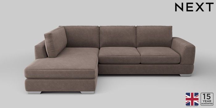 6.12.1 Buy Clayton Medium Corner Chaise - Left Hand Luxe Chenille Mink Brown Large Square Angle - Chrome Metal from the Next UK online shop Click here to use our accessible website