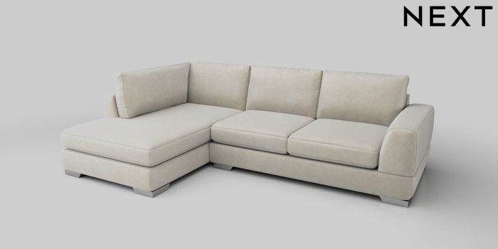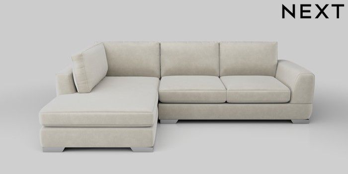 7.0.3 Buy Clayton Medium Corner Chaise - Left Hand Luxe Chenille Oyster Large Square Angle - Chrome Metal from the Next UK online shop Click here to use our accessible website