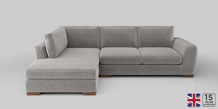 6.12.1 Buy Clayton Medium Corner Chaise - Left Hand Plush Chenille Light Grey Large Square Angle - Mid from the Next UK online shop Click here to use our accessible website