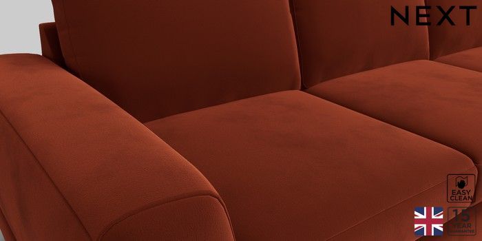 6.12.1 Buy Clayton Medium Corner Chaise - Left Hand Plush Velvet Easy Clean Ginger Orange Large Square Angle - Dark from the Next UK online shop Click here to use our accessible website