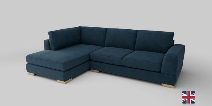 6.12.1 Buy Clayton Medium Corner Chaise - Left Hand Ripple Chenille Dark Blue Large Square Angle - Brushed Brass from the Next UK online shop Click here to use our accessible website