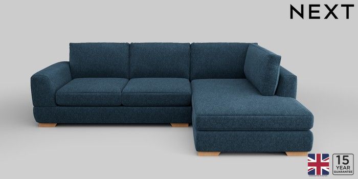 6.12.1 Buy Clayton Medium Corner Chaise - Right Hand Cotswold Chenille Dark Blue Large Square Angle - Light from the Next UK online shop Click here to use our accessible website