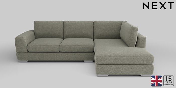 6.12.1 Buy Clayton Medium Corner Chaise - Right Hand Chunky Marl Light Olive Green Large Square Angle - Chrome Metal from the Next UK online shop Click here to use our accessible website