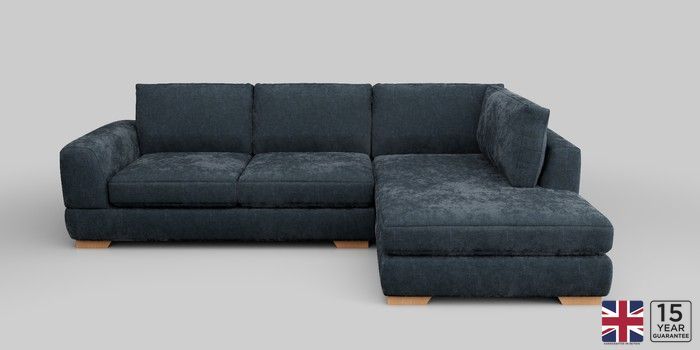 6.12.1 Buy Clayton Medium Corner Chaise - Right Hand Distressed Velour Midnight Blue Large Square Angle - Light from the Next UK online shop Click here to use our accessible website