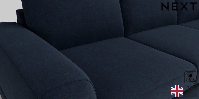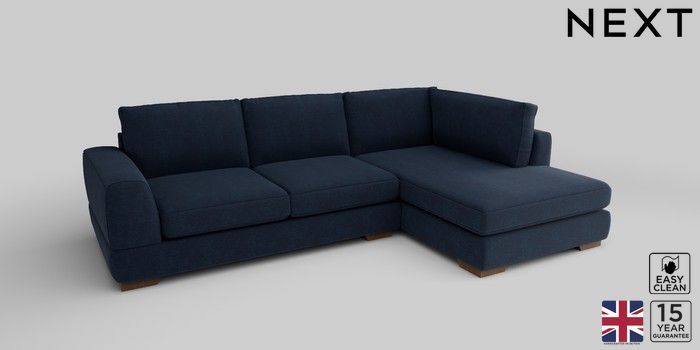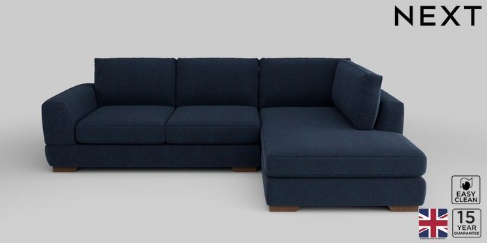 6.12.1 Buy Clayton Medium Corner Chaise - Right Hand Fine Chenille Easy Clean Dark Navy Blue Large Square Angle - Mid from the Next UK online shop Click here to use our accessible website
