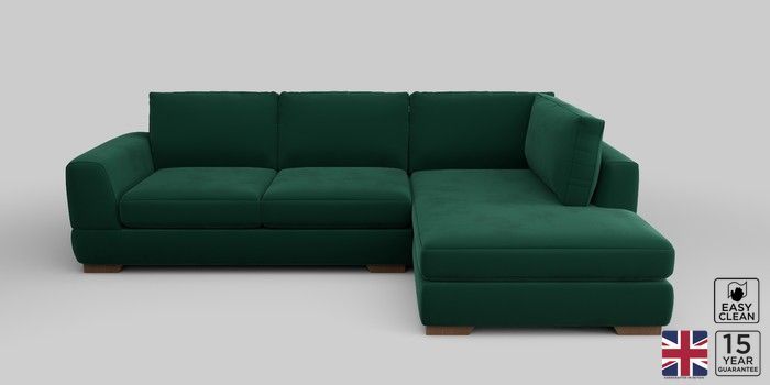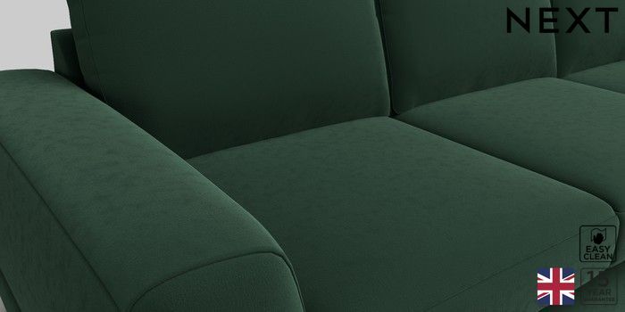 6.12.1 Buy Clayton Medium Corner Chaise - Right Hand Plush Velvet Easy Clean Bottle Green Large Square Angle - Mid from the Next UK online shop Click here to use our accessible website