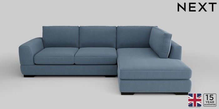 6.12.13 Buy Clayton Medium Corner Chaise - Right Hand Relaxed Linen Look Mid Blue Large Square Angle - Dark from the Next UK online shop Click here to use our accessible website