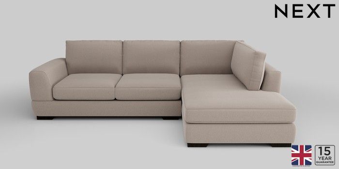 6.12.13 Buy Clayton Medium Corner Chaise - Right Hand Relaxed Linen Look Mid Natural Large Square Angle - Dark from the Next UK online shop Click here to use our accessible website