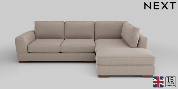 6.12.13 Buy Clayton Medium Corner Chaise - Right Hand Relaxed Linen Look Mid Natural Large Square Angle - Mid from the Next UK online shop Click here to use our accessible website
