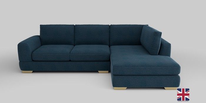7.0.3 Buy Clayton Medium Corner Chaise - Right Hand Ripple Chenille Dark Blue Large Square Angle - Brushed Brass from the Next UK online shop Click here to use our accessible website